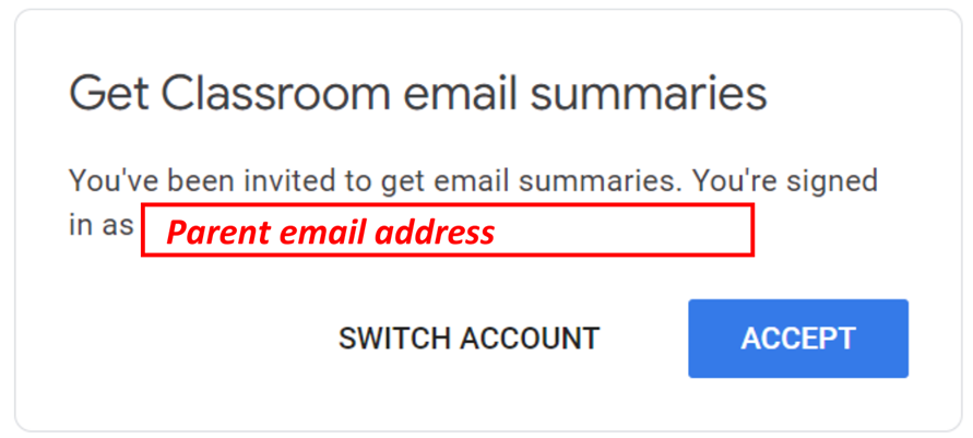 Open the email and click “Accept”. If you have multiple children at Verulam, you will receive individual invitations for each. Choose “weekly”. Once you accept the invitation, you will start receiving weekly email summaries with an overview of your child’s assignments and class activity. You do not have to confirm anything once you have chosen, just close the browser. Please see a screen shot of this below:
