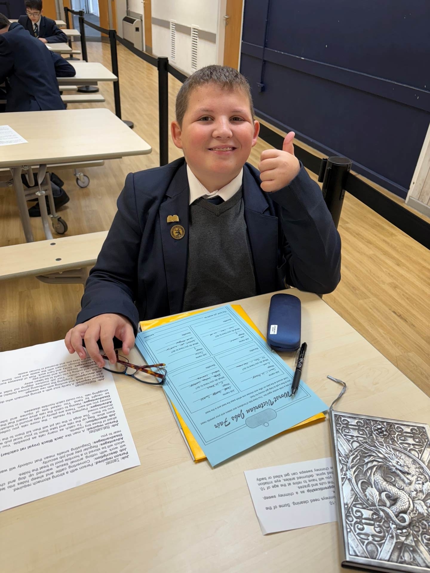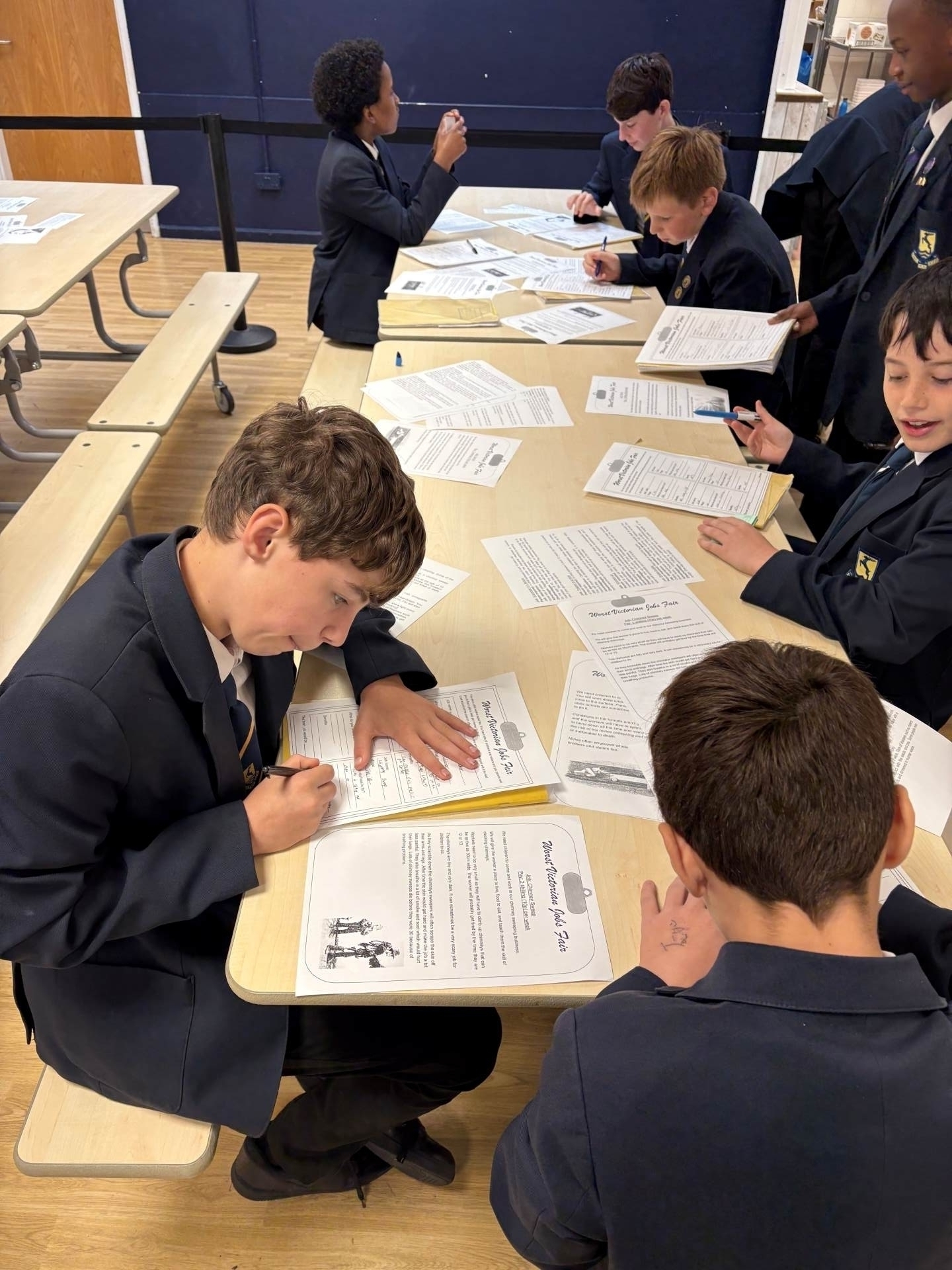 Year 8 students have taken a creative leap back to 1830 as part of their Industrial Revolution unit in Mr Pettitt’s history class. In a recent lesson, the school canteen turned into a bustling Victorian Job Fair, giving students an experience of life during one of the most transformative - and challenging - periods in British history. Students explored 50+ different job roles from the Industrial era from nightsoilsmen and match makers to coal miners and chimney sweeps. They were tasked with one unusual challenge: find the worst job possible – the one with the harshest conditions, lowest pay or highest risk. It was a lively (and often grim!) reminder of the tough realities faced by many during the 19th century. The lesson sparked important conversations about child labour, workers' rights and how far we’ve come.