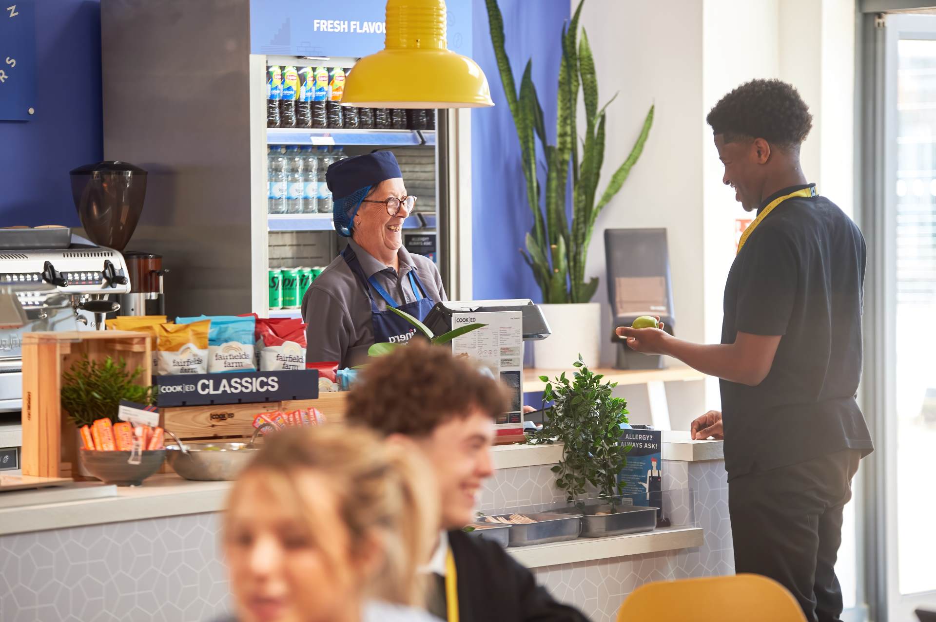 The Sixth Form centre has it’s own café which is open from 8am until 2.30pm and serves coffee, hot chocolate, tea, smoothies and a wide variety of hot food, sandwiches, fruit and puddings. This gives our Sixth Formers access to delicious, healthy lunches and snacks throughout the day. The Sixth Form Centre also houses a Social Area in which to eat and take a break from studying. Food is prepared on-site from scratch with a substantial main meal on offer every day plus vegetarian and vegan options.